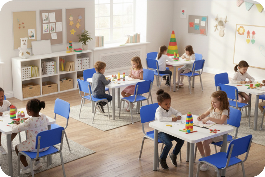 • Móveis escolares para crianças de 4 a 11 anos de idade