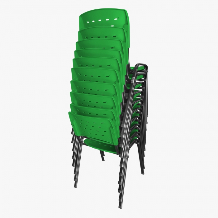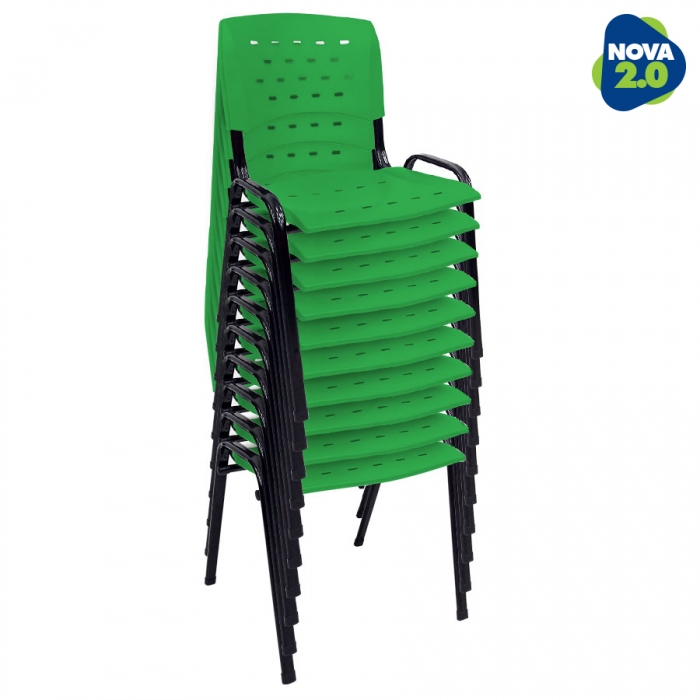 As cadeiras são bastante resistentes, podendo ser empilhadas, o que as torna bem versáteis e de fácil locomoção. Fácil higienização e são ecologicamente corretas.