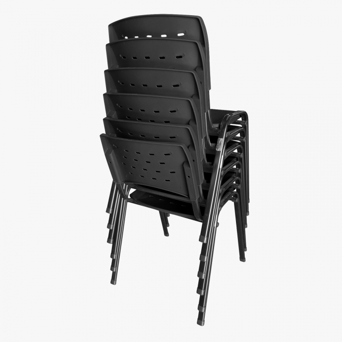 As cadeiras são bastante resistentes, podendo ser empilhadas, o que as torna bem versáteis e de fácil locomoção. Fácil higienização e são ecologicamente corretas.