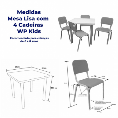Mesa Lisa com 4 Cadeiras WP Kids Bege Pastel | Cód.: --