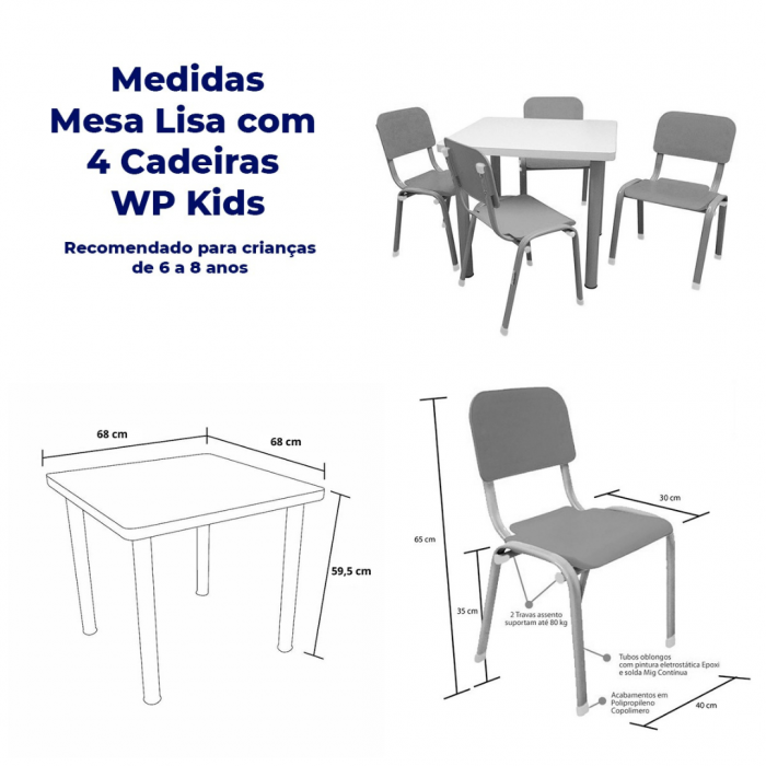 Mesa Lisa com 4 Cadeiras WP Kids Bege Pastel | Cód.: --